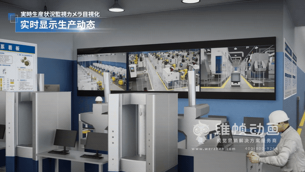在为一间智能精密齿轮工厂打造的动画宣传中,镜头从一辆载着原材料的货运汽车驶入厂区开始。画面随之转化为科技感十足的动态线框图,勾勒出物料流转的轨迹。AGV小车无声穿梭,智慧大屏实时跳动,远程监控画面中清晰地映出各个车间——机器臂精准装配,无人小车灵活配送。